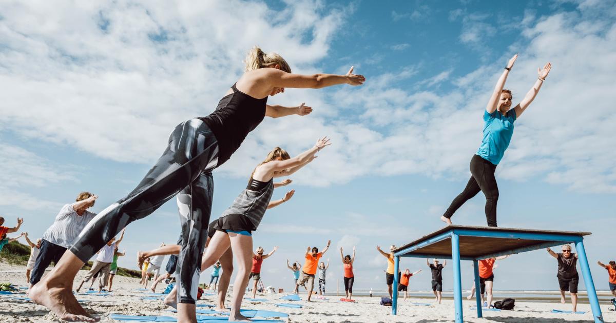 Zum Mitmachen, Auspowern, Fitbleiben, Austoben: Sobald das Wetter es erlaubt, werden viele Sportkurse am Strand angeboten.